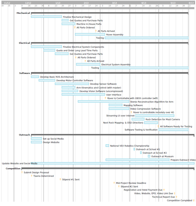 Fig. 7. Preliminary timeline for development of rover and notable competition dates