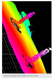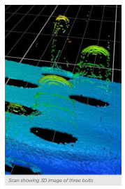 • Supporting continuous improvement efforts through robust data collection and analysis for preventive maintenance and process optimization. Scan showing 3D image of three bolts